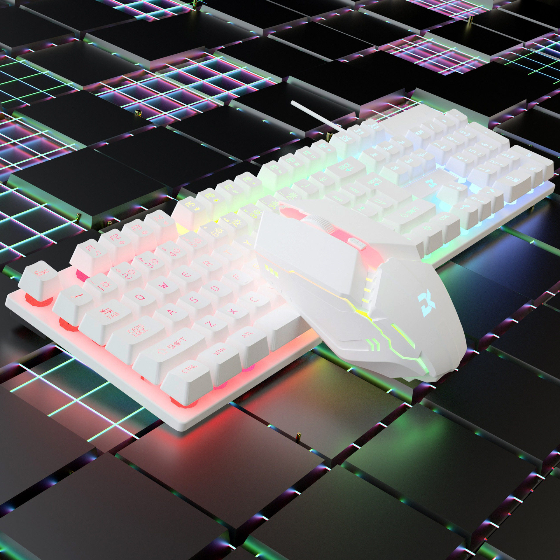 📚 有线发光键盘鼠标套装游戏电脑台式笔记本悬浮键帽机械手感USB头