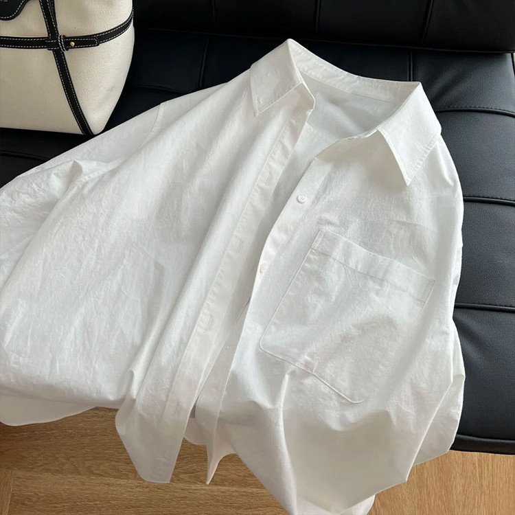 📚 白色纯棉长袖衬衫女2025新款韩系慵懒褶皱感上衣宽松防晒衬衣外套