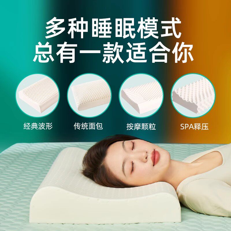 📚 金橡树泰国天然乳胶枕头枕芯双人枕加长橡胶颈椎枕护颈枕按摩正品