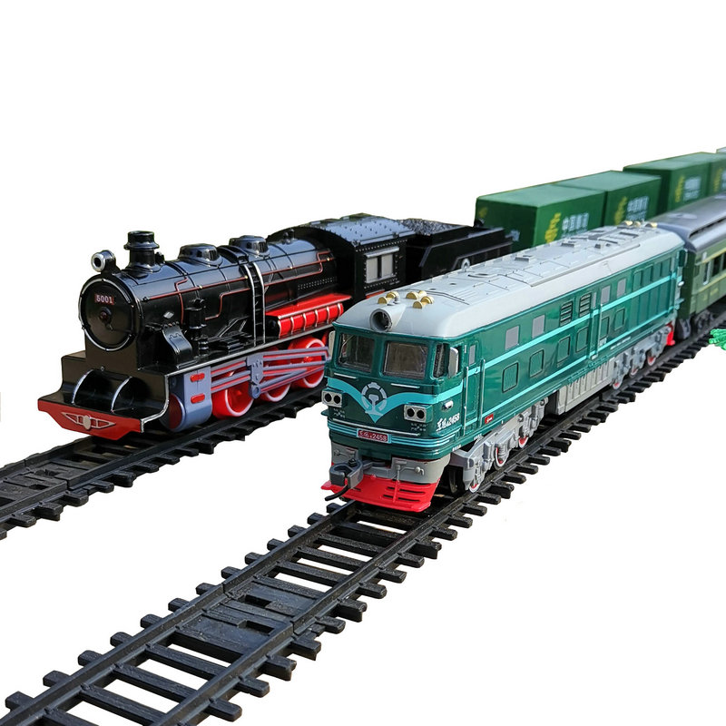 📚 奋发仿真电动轨道模型儿童男女孩玩具和谐号蒸汽机东风4B绿皮火车