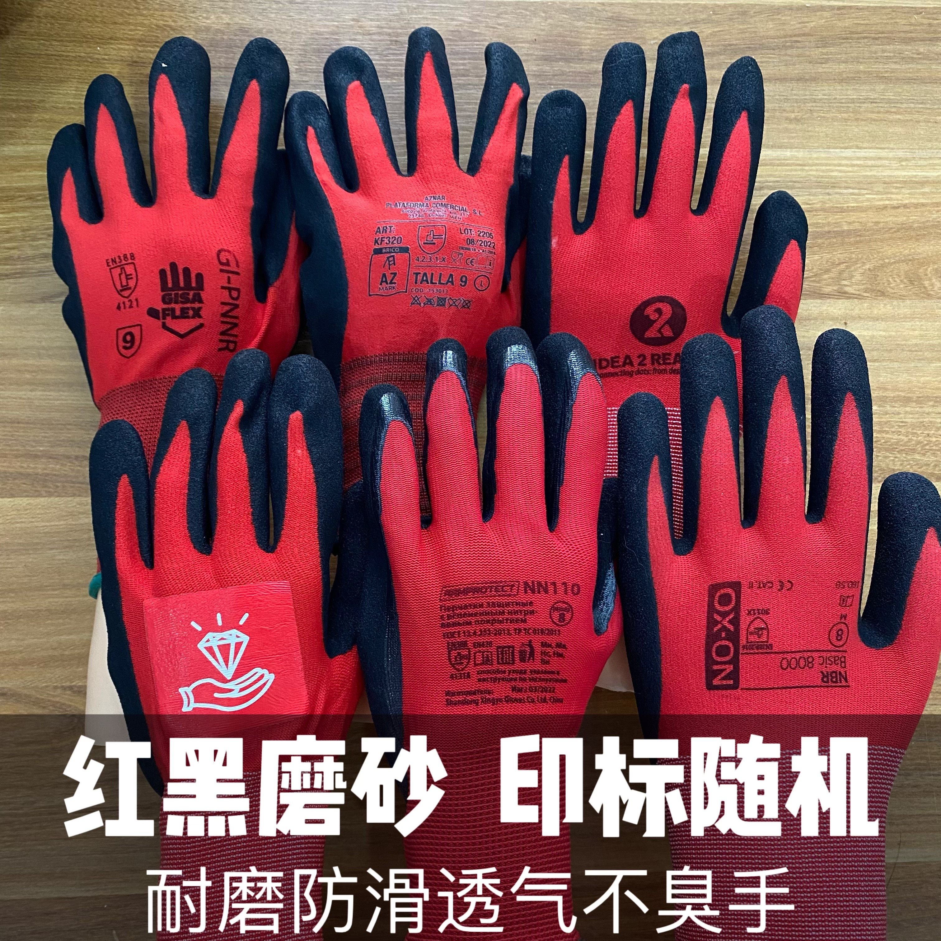 📚 丁腈喷盐磨砂手套外贸出口款二级品防滑防油耐磨汽修搬运工地防护