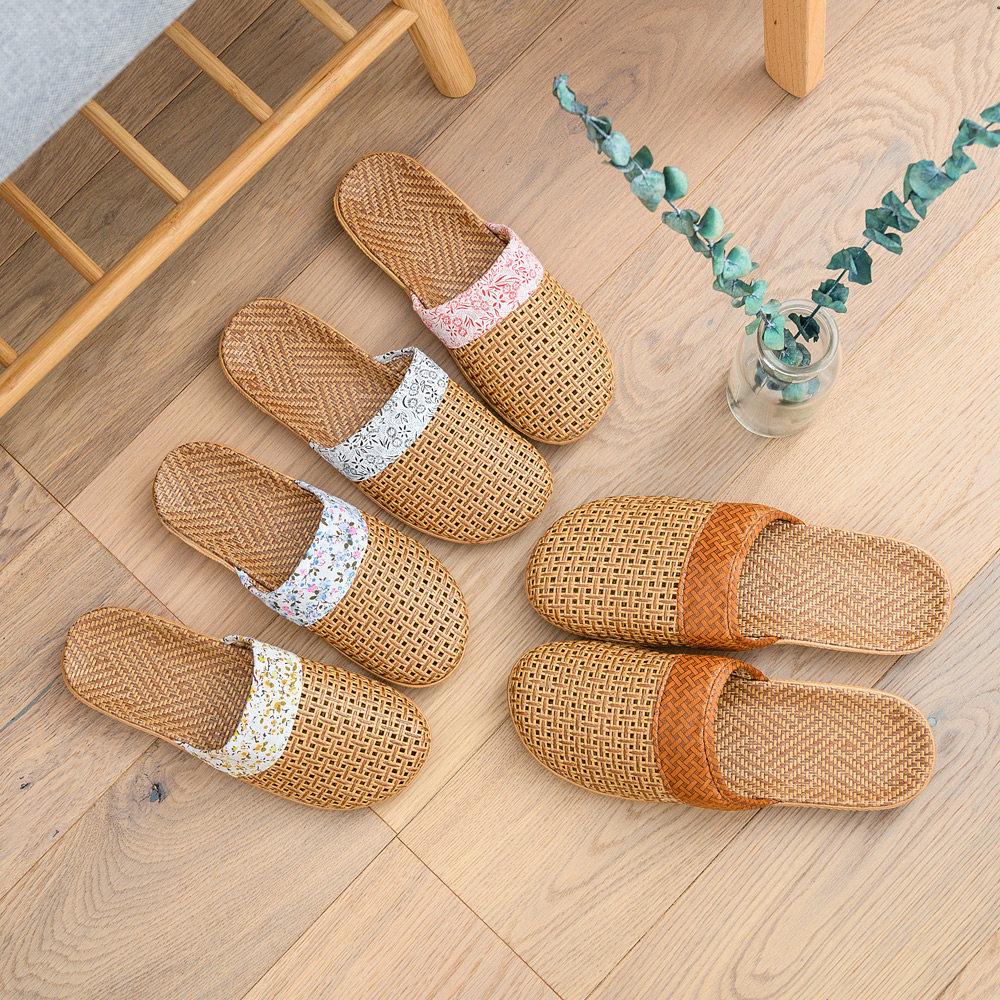 📚 碧兰蒂夏季藤草席包头凉拖鞋居家男女情侣漏洞地板麻拖防滑透气