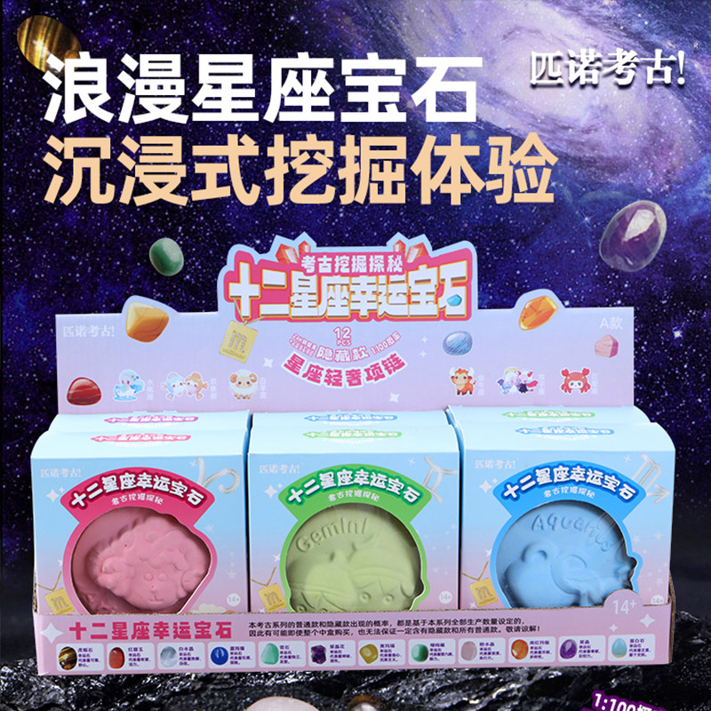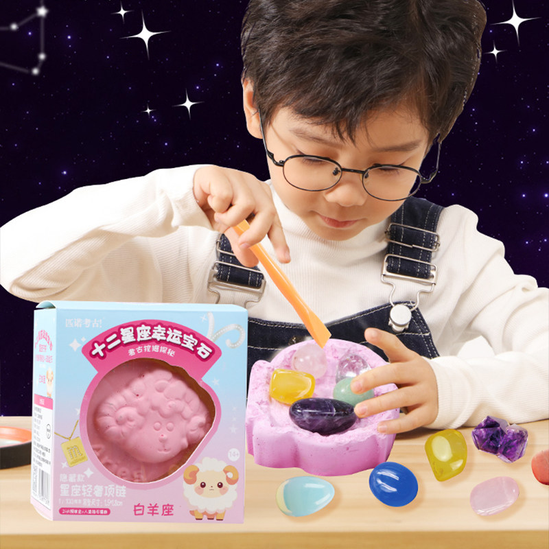 📚 儿童十二星座考古玩具挖掘宝藏化石手工diy男女孩挖宝石矿石盲盒