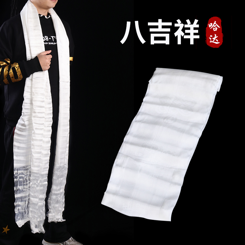 📚 哈达围巾藏族饰品八吉祥花八吉祥真丝哈达 藏族蒙古族民族品 白色