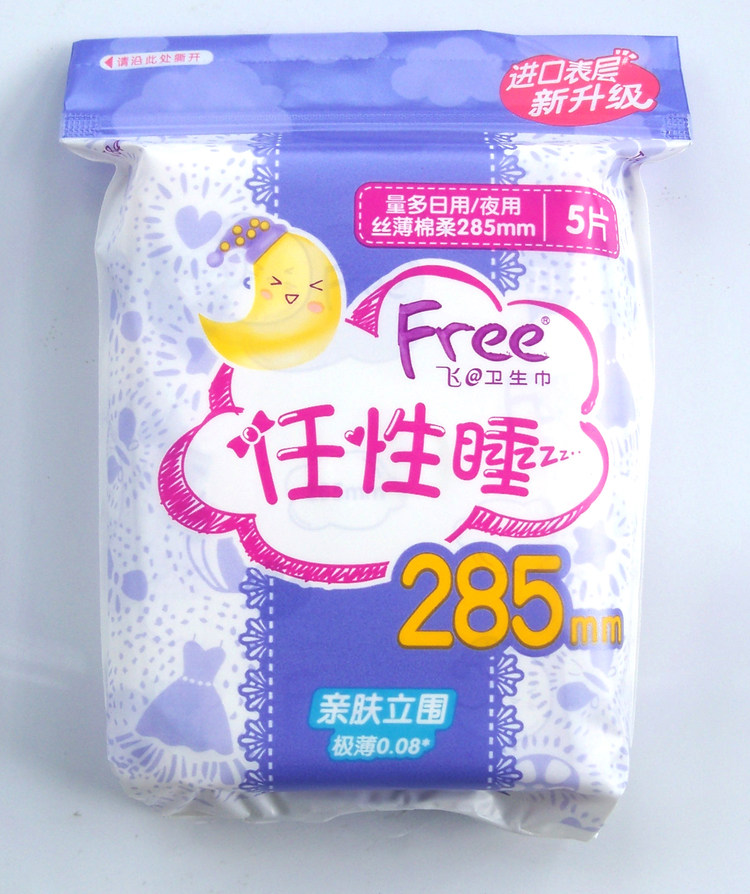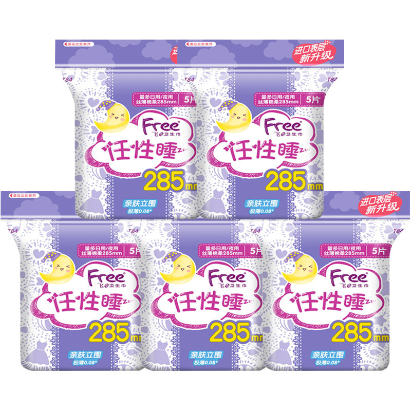 📚 Free卫生巾 棉柔夜用285mm亲肤立围丝薄量多型夜用学生少女姨妈巾