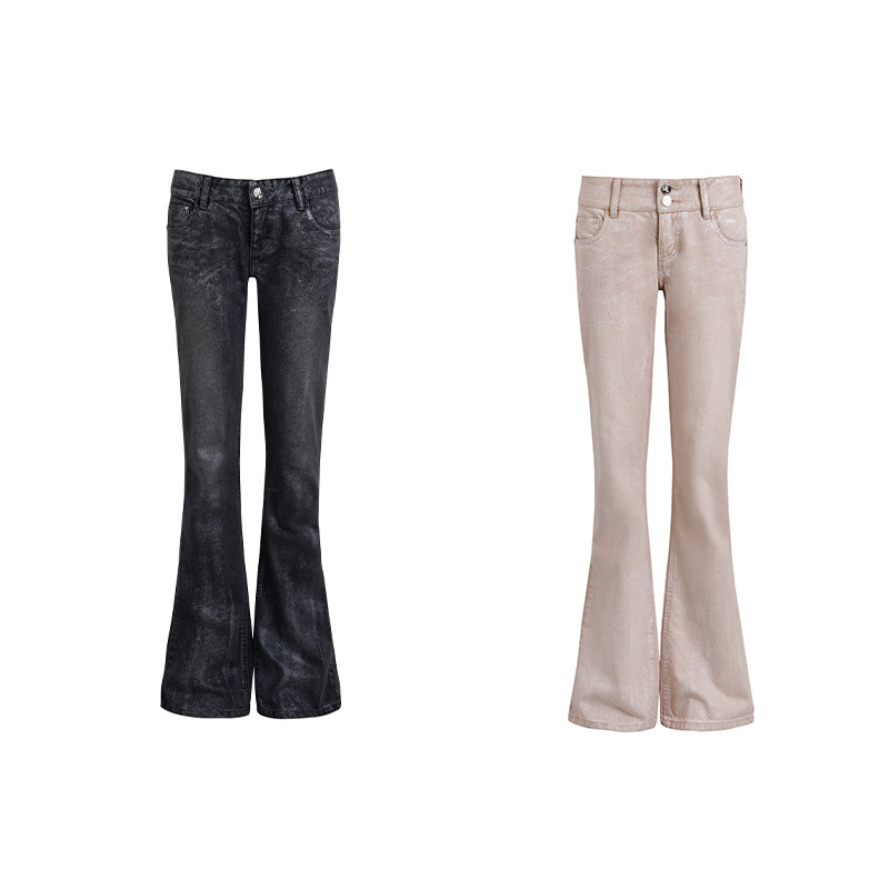 📚 JELLOJELLO2025春夏新款珠光银粉涂层樱花刺绣做旧水洗低腰牛仔裤