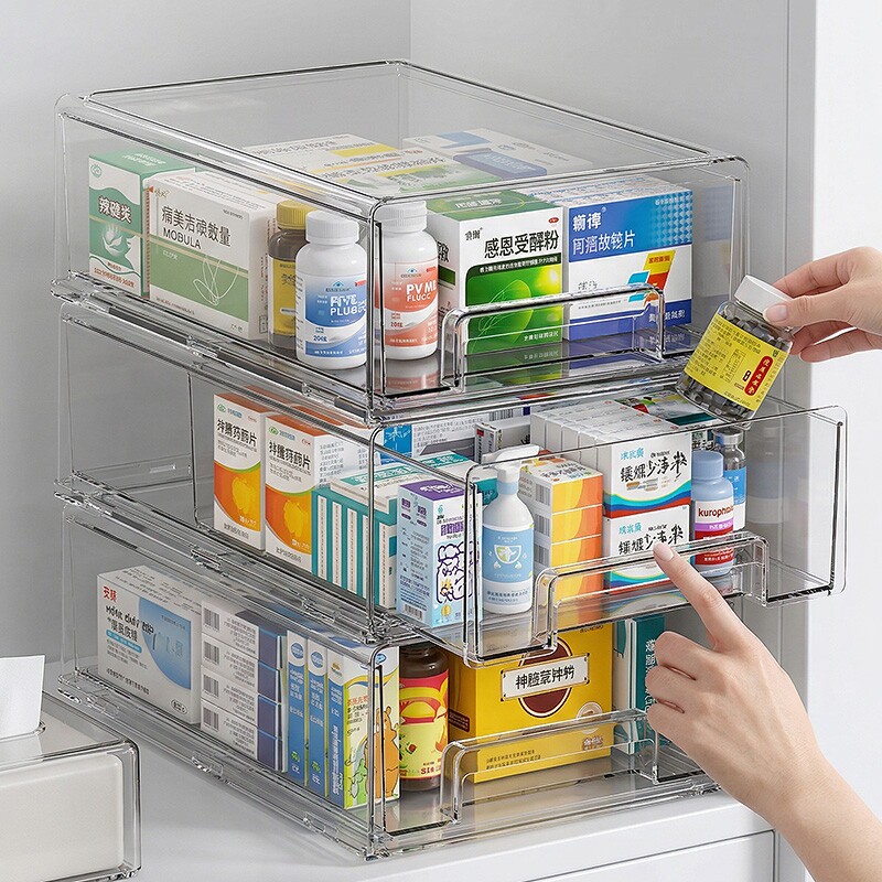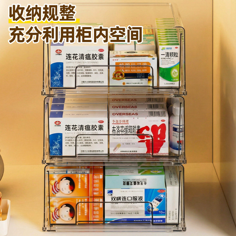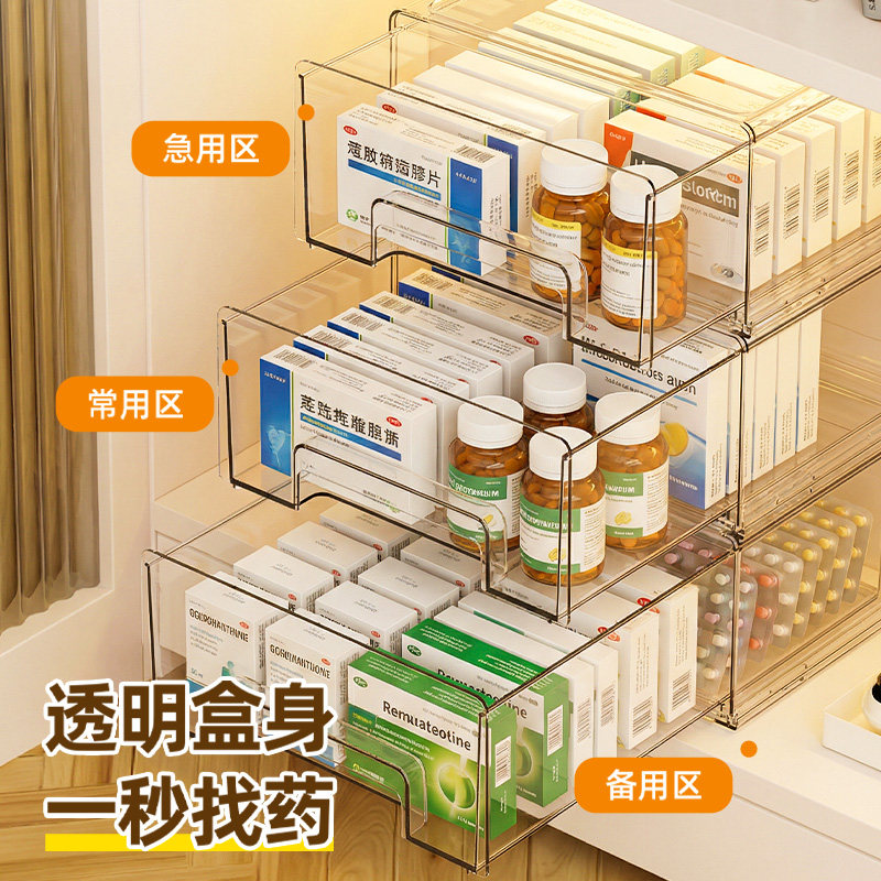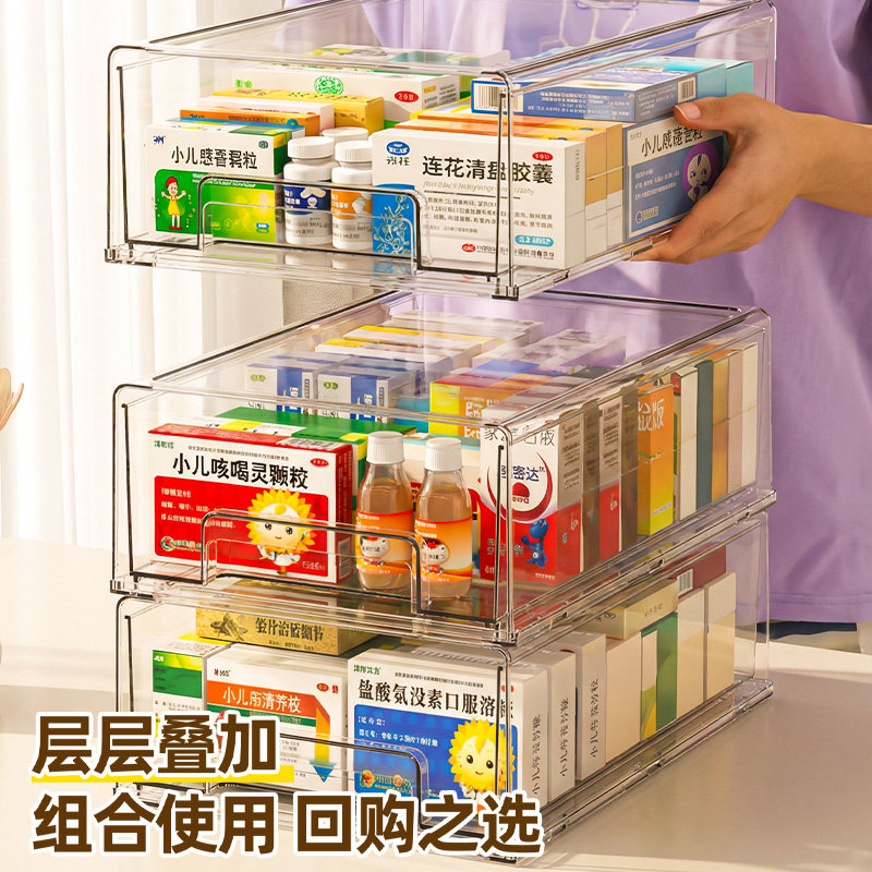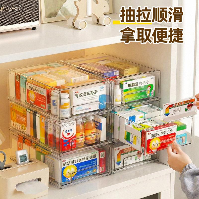 📚 抽屉式药箱家庭药品药物收纳整理盒大容量家用多层透明急救医药箱