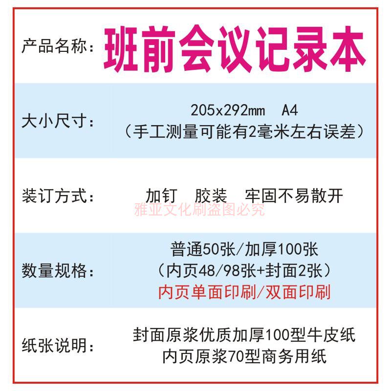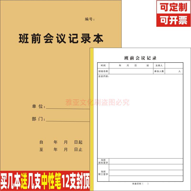 📚 班前会议记录本A4单位企业施工矿场每日班后安全会议整理台账定制
