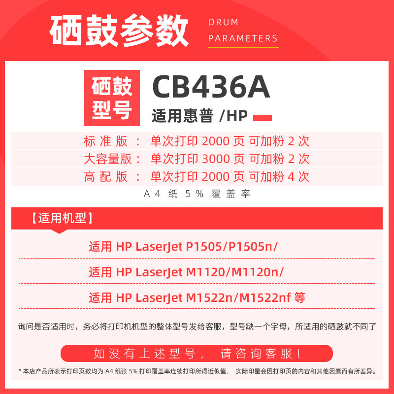 📚 适用惠普P1505硒鼓M1522nf打印机晒鼓P1505n M1120n 息鼓CB436A