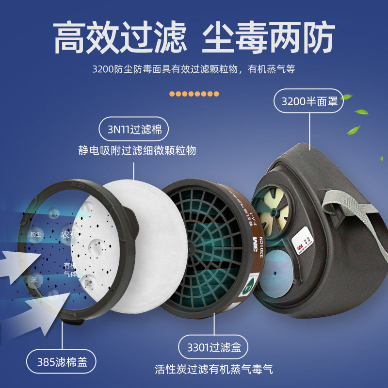 📚 3m防毒面具3200面罩喷漆专用防异味化工气体放毒防尘过滤式防护