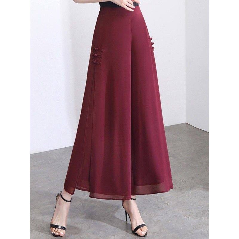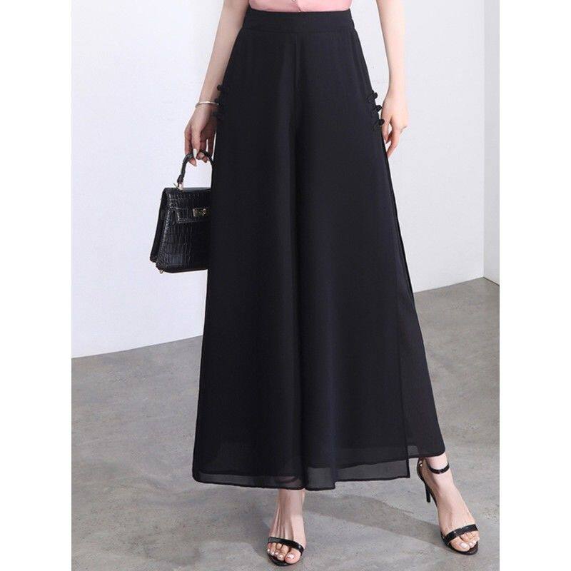 📚 白色阔腿裤女夏季薄款雪纺九分开叉裤子裤裙垂感裙裤新款2024爆款