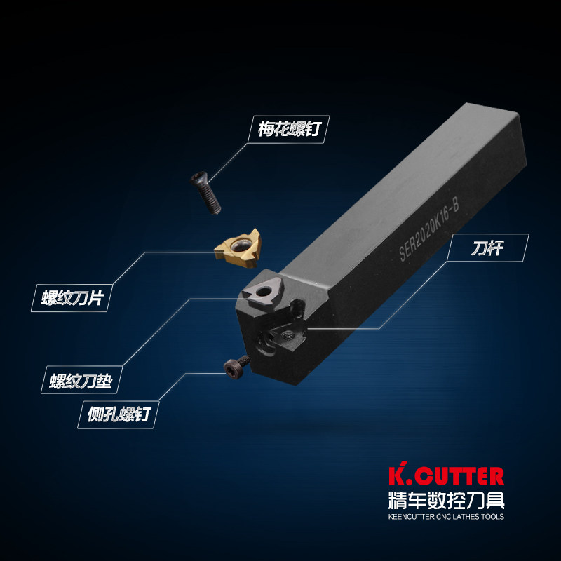 📚 数控外螺纹车刀杆SER2020K16/2525M16-B挑丝调扣刀架配内螺纹刀片