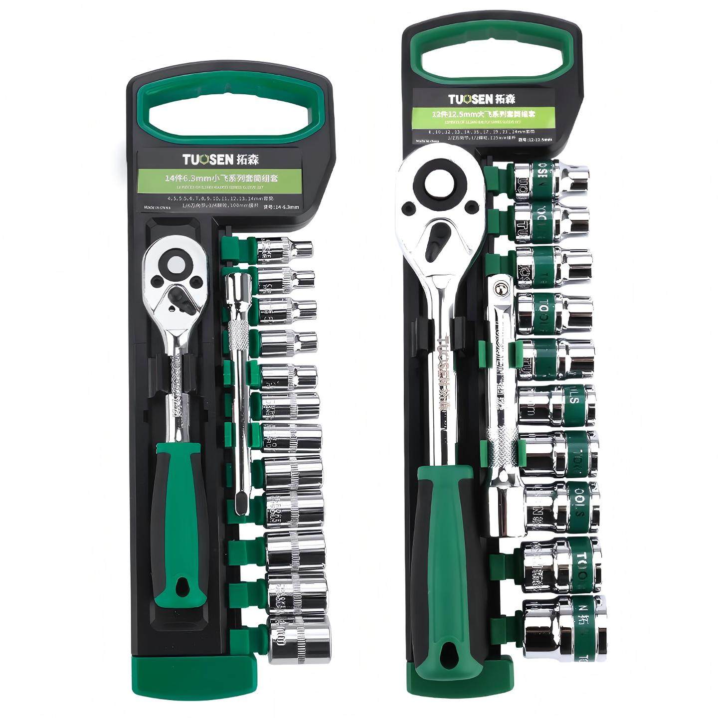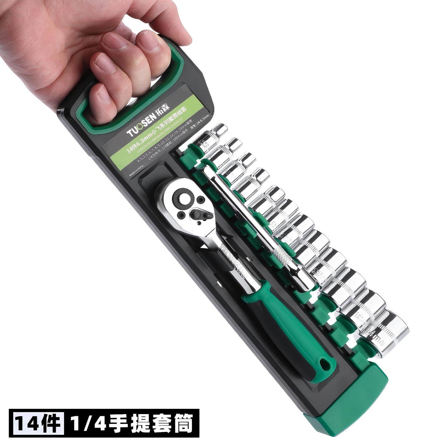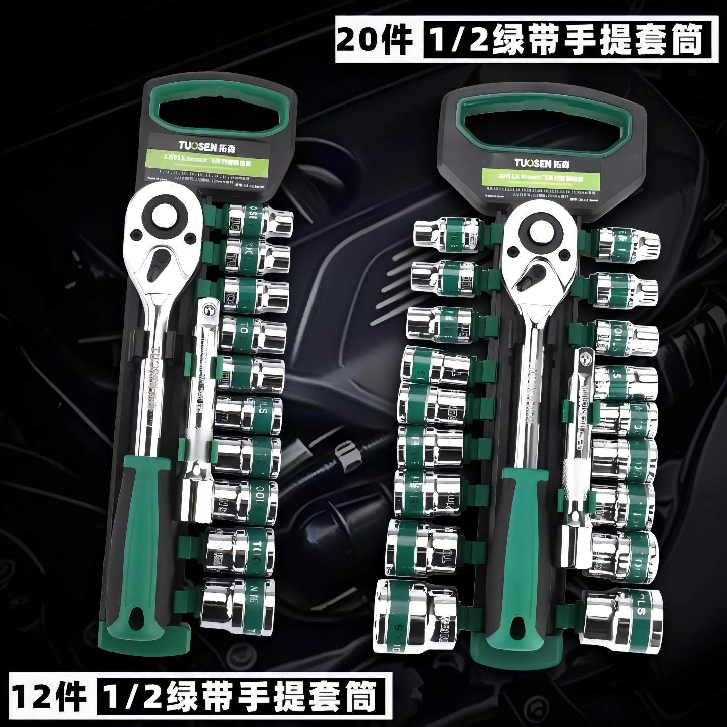 📚 拓森五金工具棘轮扳手套筒套装绿带套筒头12件14件20件汽修组套
