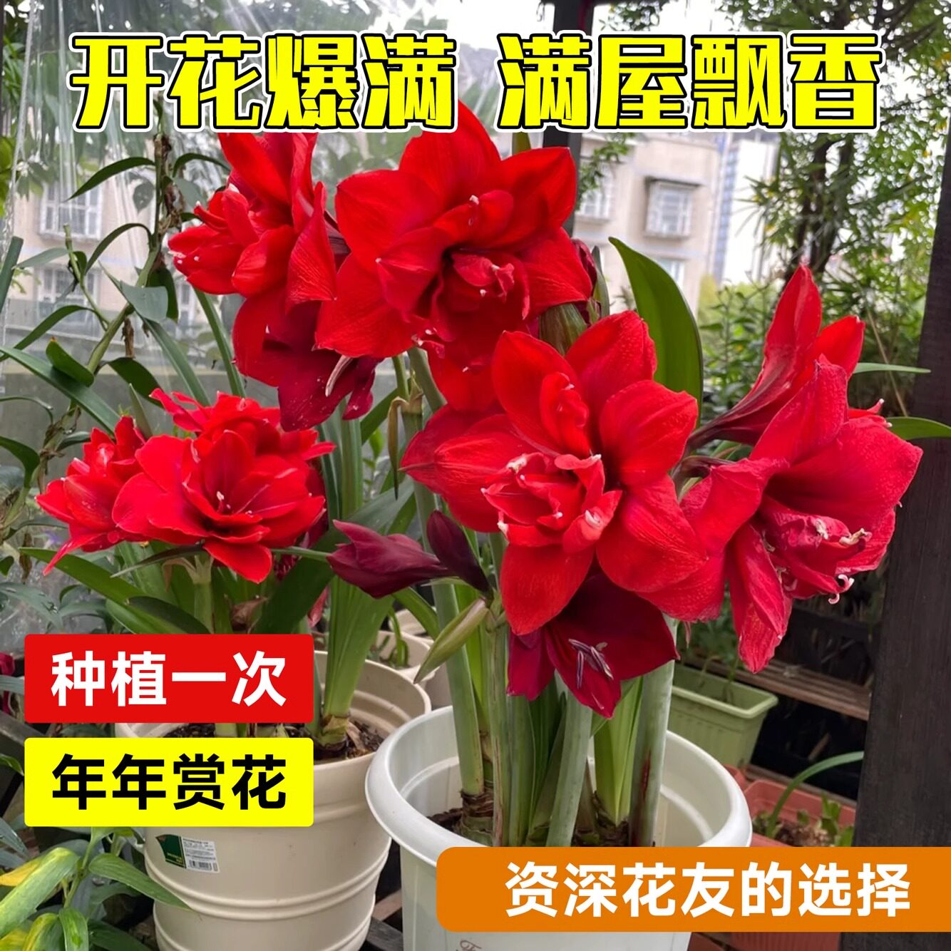 📚 红色朱顶红种球精品阿弗雷安吉拉花苞重瓣室内阳台花卉植物