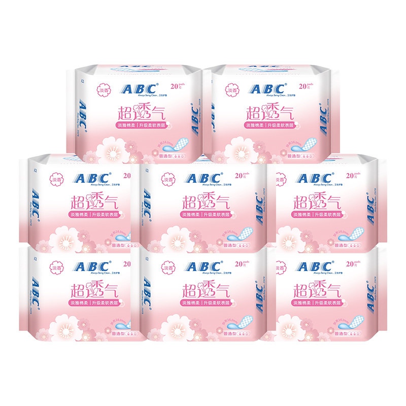 📚 ABC护垫超薄透气加长163mm日用迷你卫生姨妈巾整箱组合装官方正品