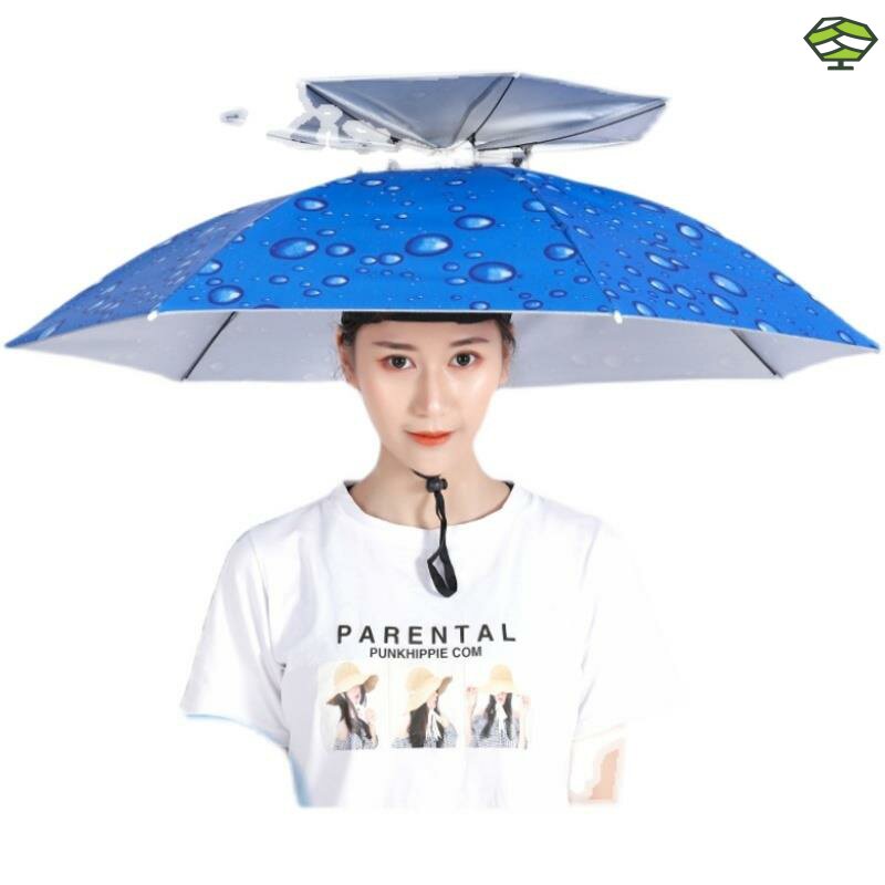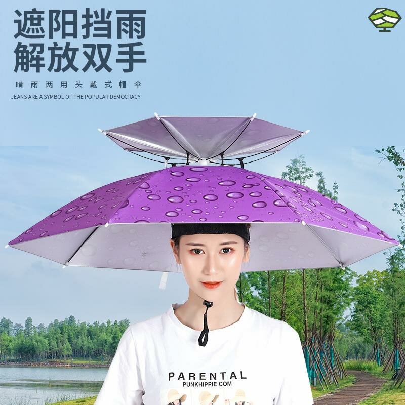 📚 伞式太阳帽防雨钓鱼伞帽头戴式防晒折叠头顶雨伞帽户外遮阳垂钓用