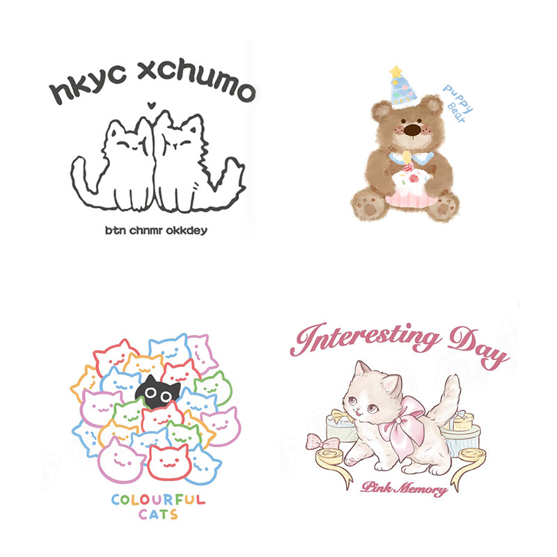 📚 卡通动物小猫咪烫画印小熊花贴新款DIY热转印胶片趣味电熨斗烫画