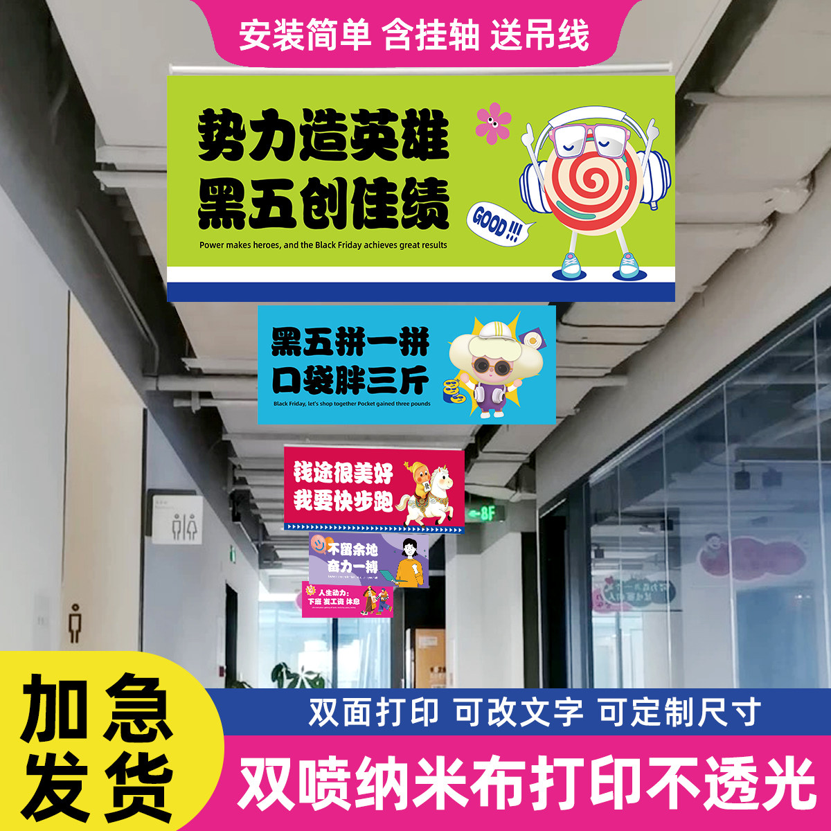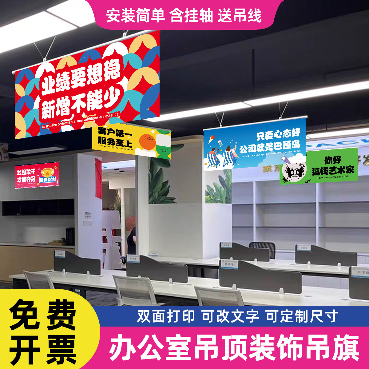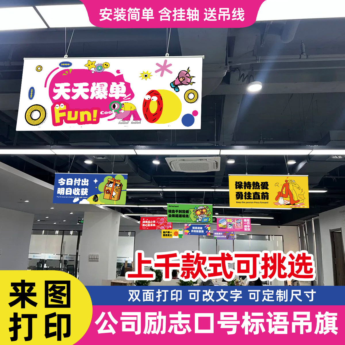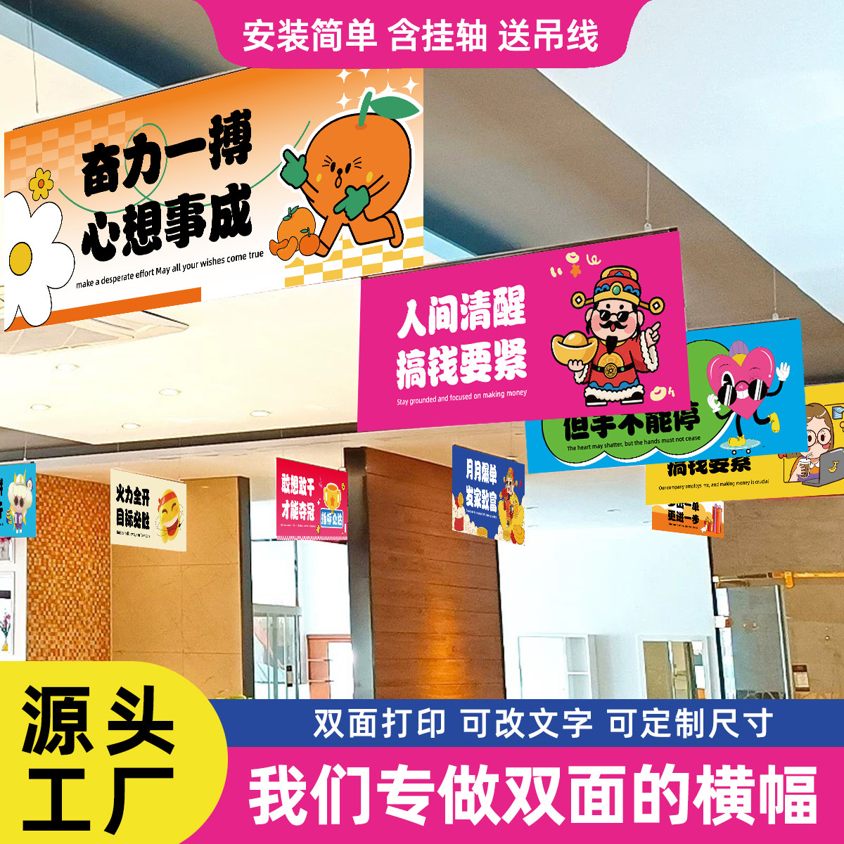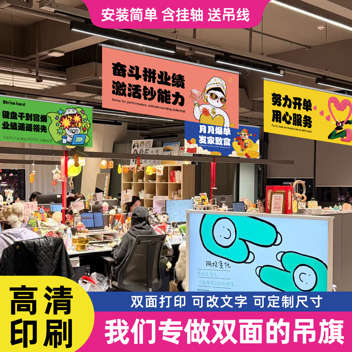 📚 公司双面吊旗办公室顶悬挂装饰装扮文化励志口号激励标语工位横幅