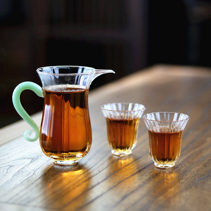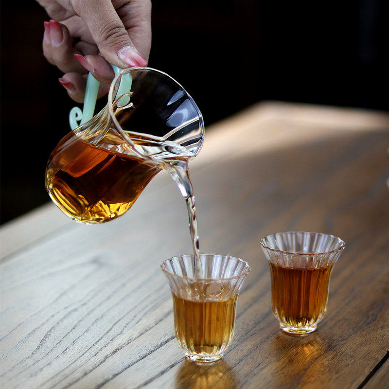 📚 高颜值女士小蛮腰白菜品茗杯耐热玻璃闻香杯高透竖纹小茶碗小茶盅