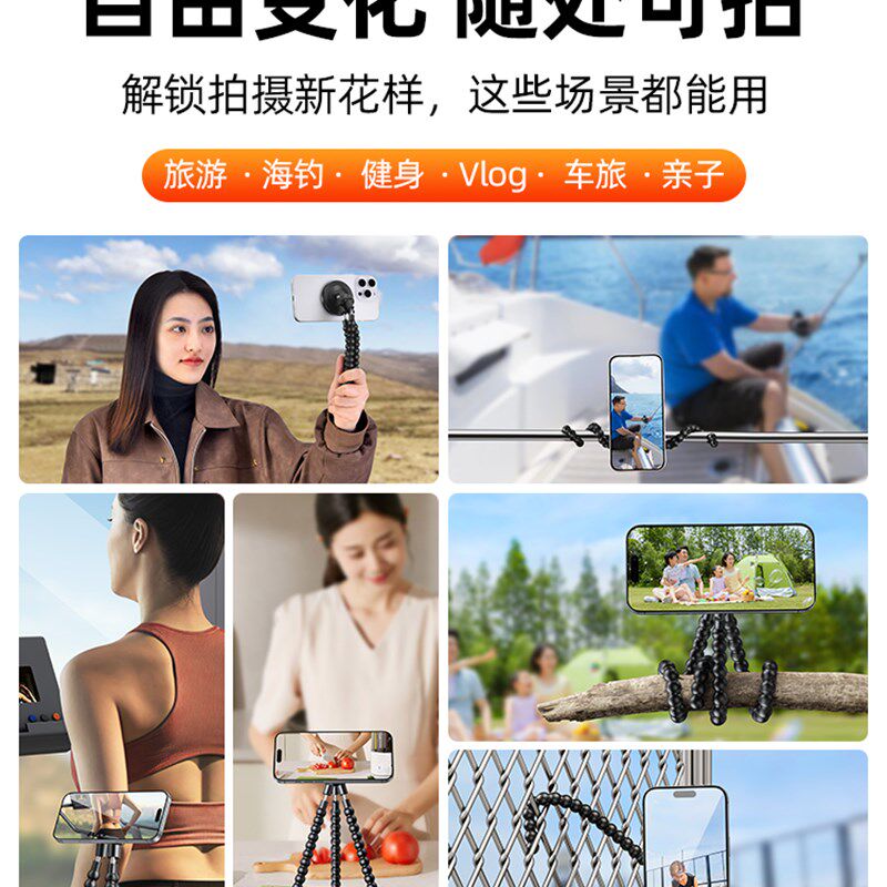 📚 八爪鱼网球磁吸手机支架挂网固定拍摄视频录像自拍神器三脚架足球