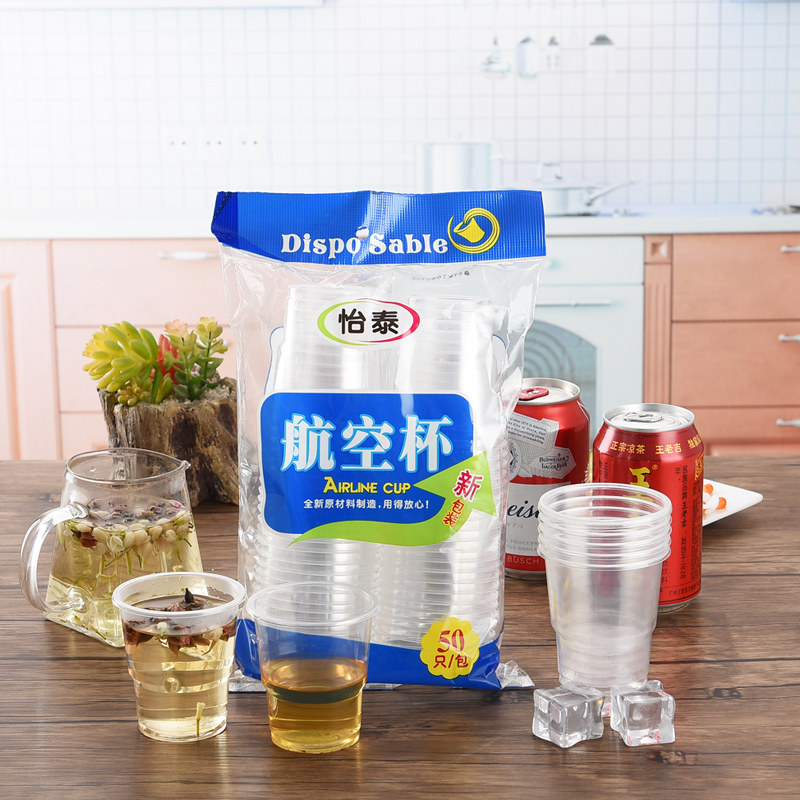📚 一次性杯子透明杯塑料杯加厚小号航空杯家用饮茶定制水杯整箱包邮