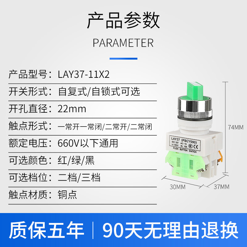📚 LAY37-11X2二档20X3三挡选择旋转换按钮开关两档位自锁复位22MM