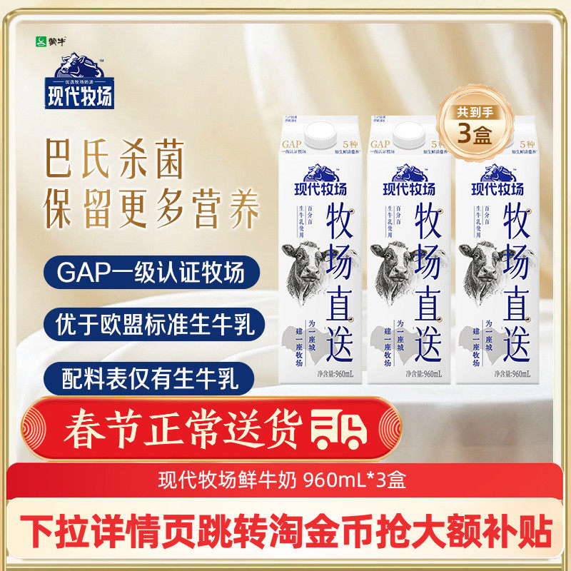 📚 【淘宝秒杀】蒙牛鲜奶现代牧场鲜牛奶牧场直送960ml*3盒 新鲜牛奶