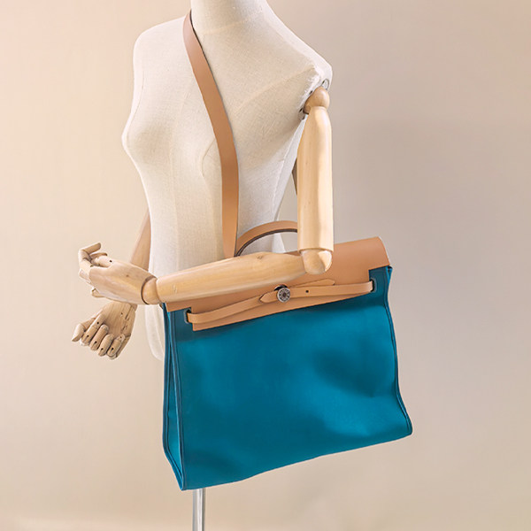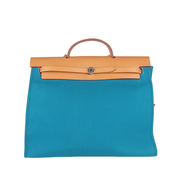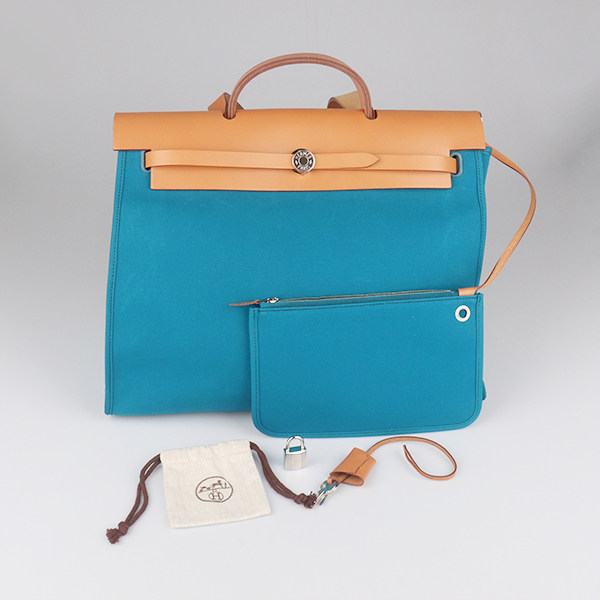 📚 中古「9新」HERMES(爱马仕)HERBAG伊兹密尔蓝/天然色帆布39单肩包