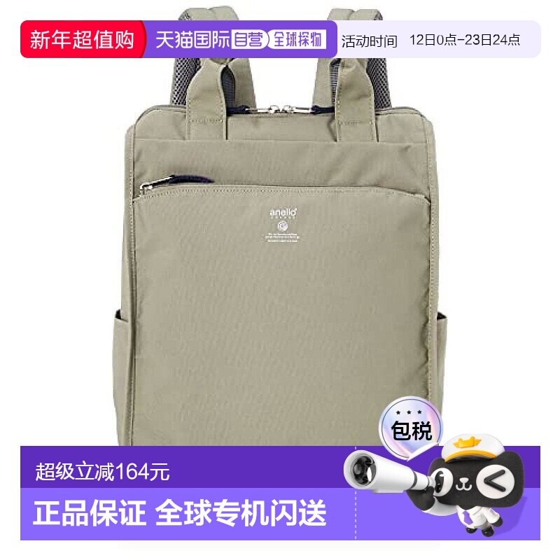 📚 【日本直邮】Anello阿耐洛 女款双肩背包电脑包 灰米色 GTM0171