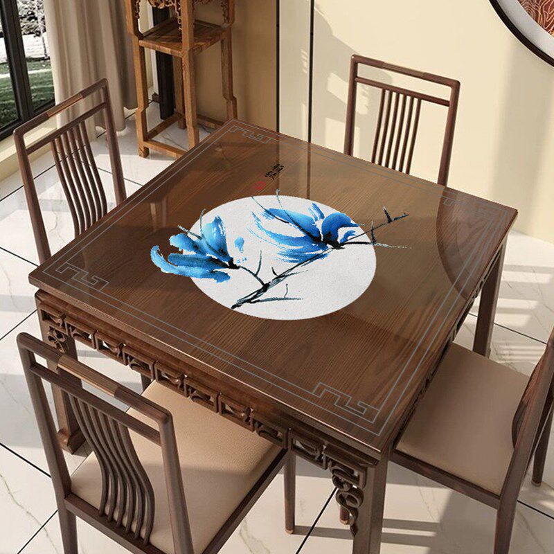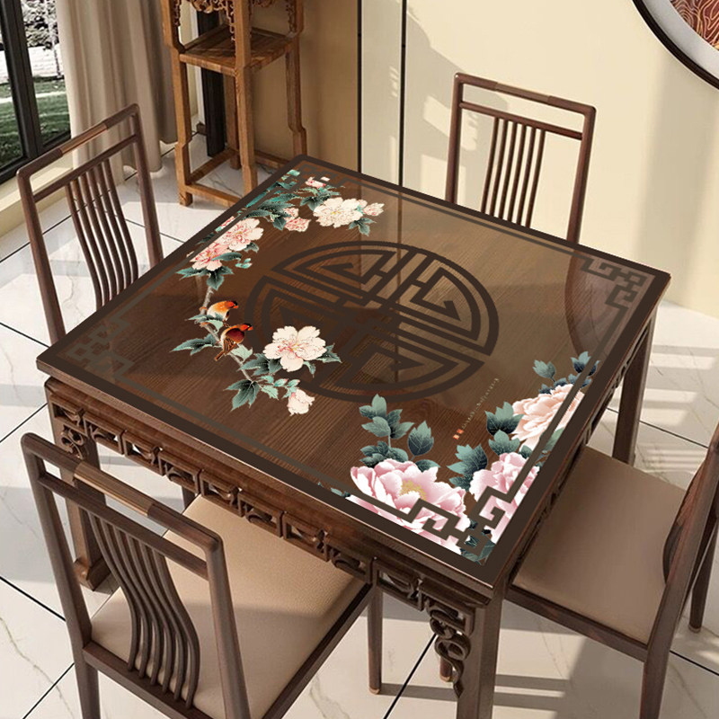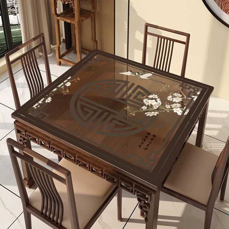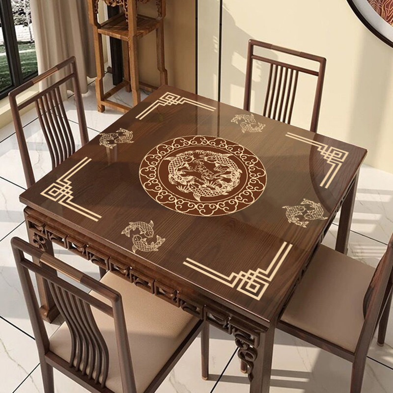 📚 新中式正方形桌布防水防油免洗PVC透明软玻璃八仙桌桌垫茶几台布