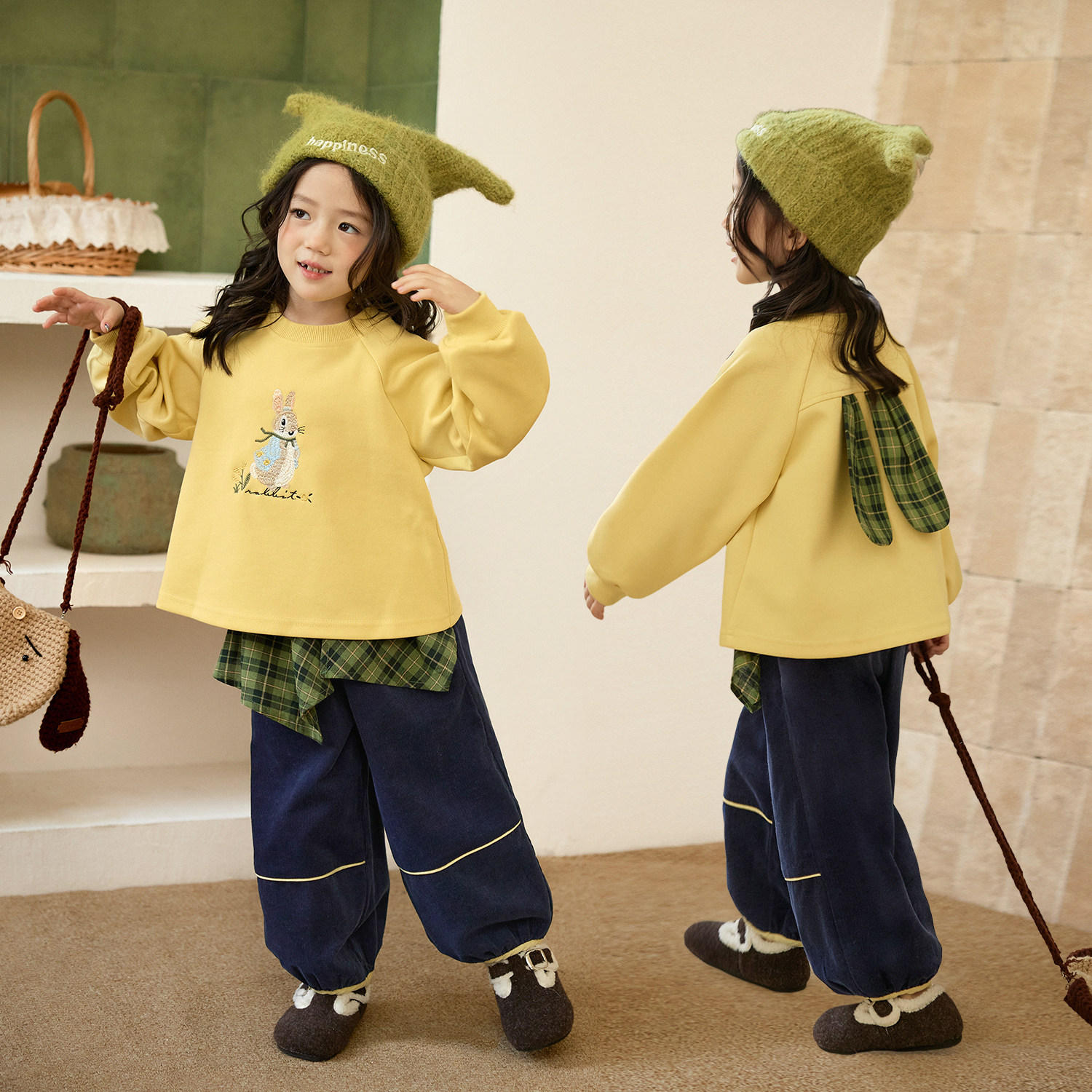 📚 小O宝Okids童装女宝宝森系秋季套装女洋气2025新款女童娃娃衫套装
