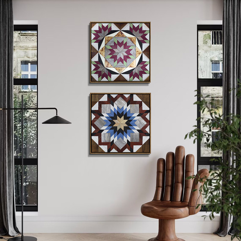 📚 简约现代防木雕刻墙挂画波西米亚抽象花纹挂画波普家居轻奢装饰画