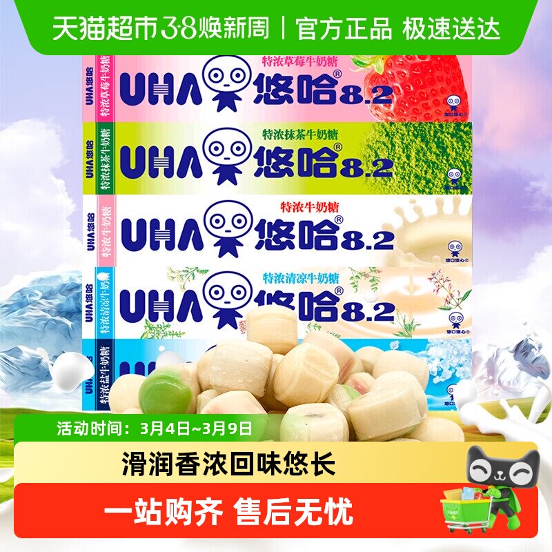 📚 悠哈特浓条糖40g*10条整盒牛奶糖草莓抹茶清凉桃子盐味零食