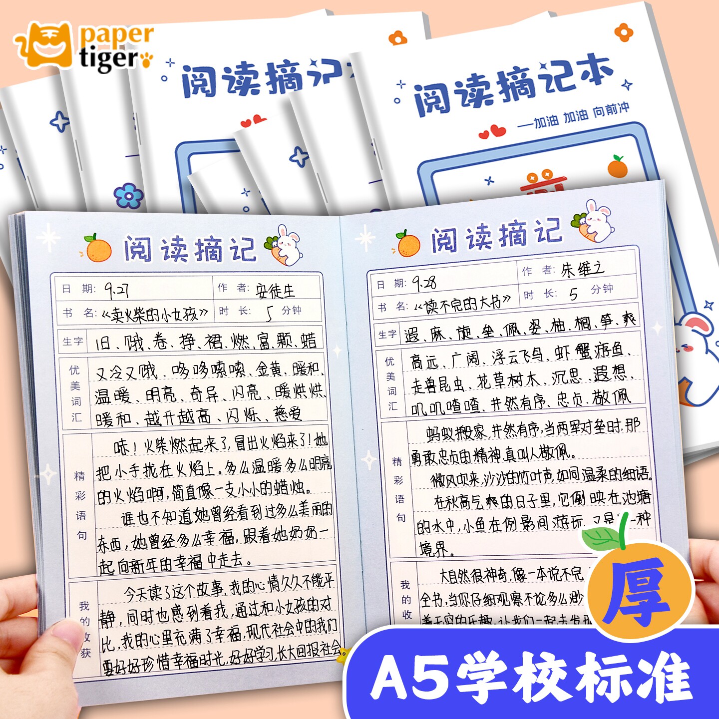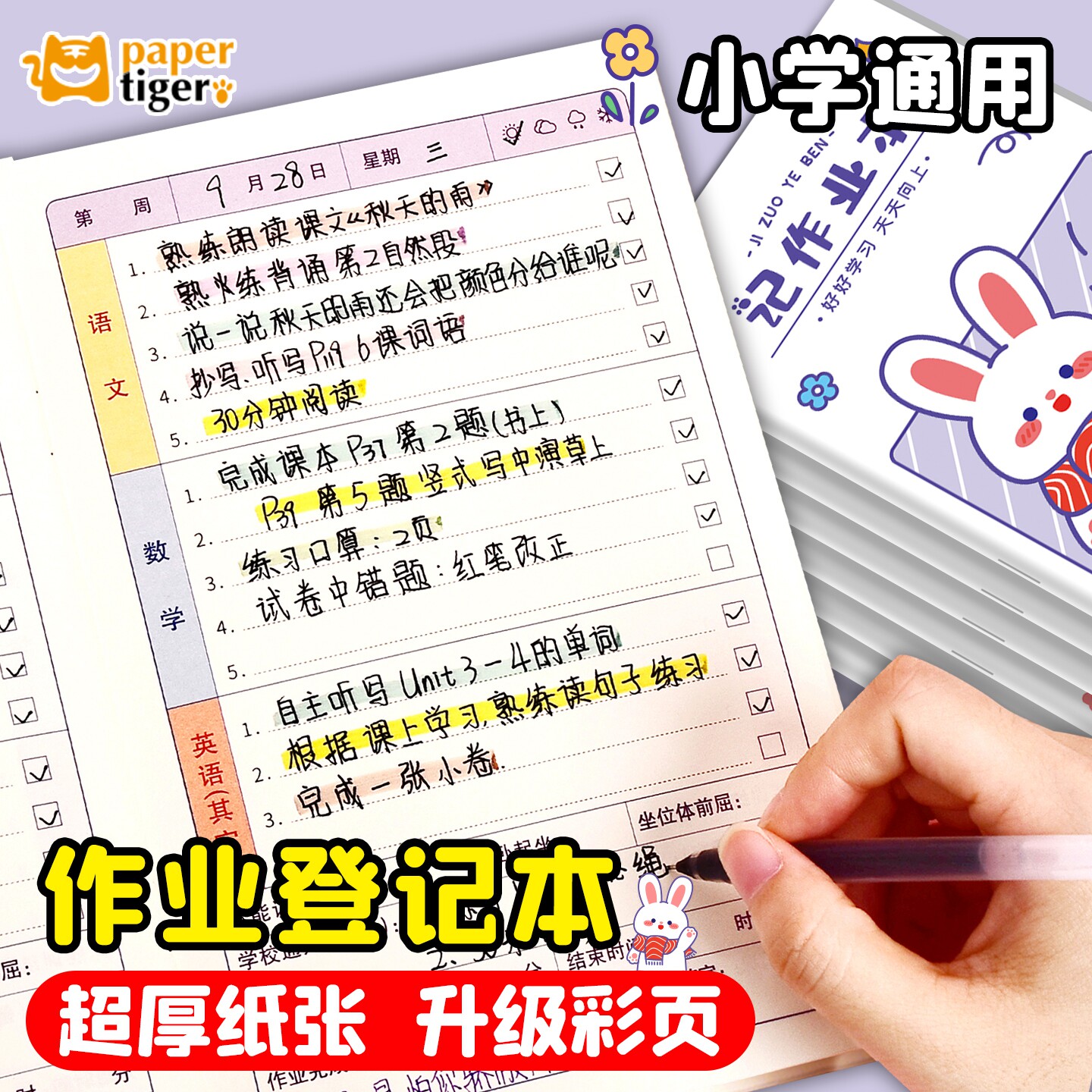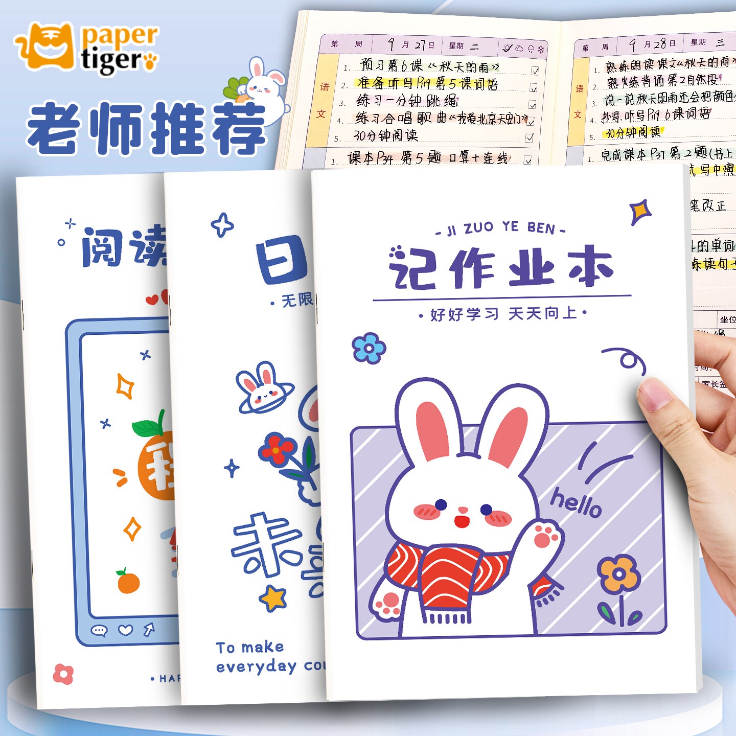 📚 可爱小兔小学生一二三年级田字格日记本A5记作业本作业登记本好词好句阅读摘记本分科目记录家校联系本假期备