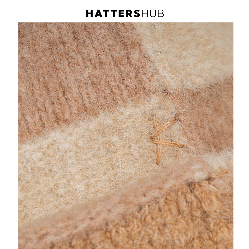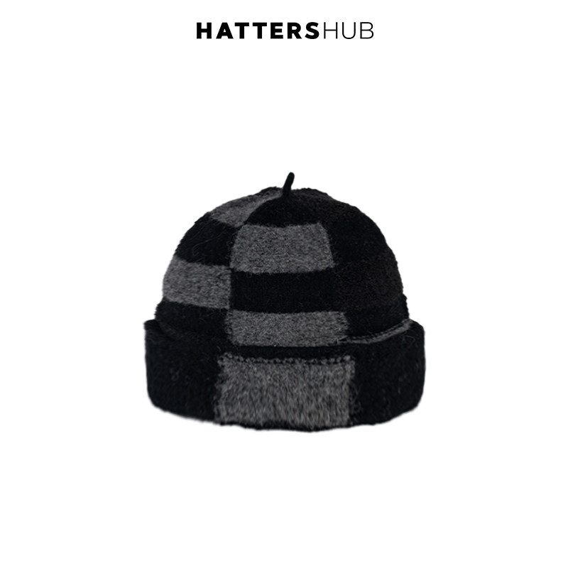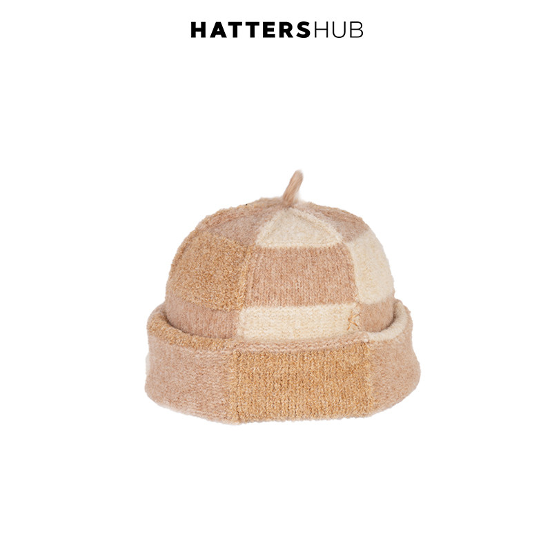 📚 KEYONE复古小众风针织格纹冷帽女秋冬显脸小卷边堆堆帽帽子含羊毛