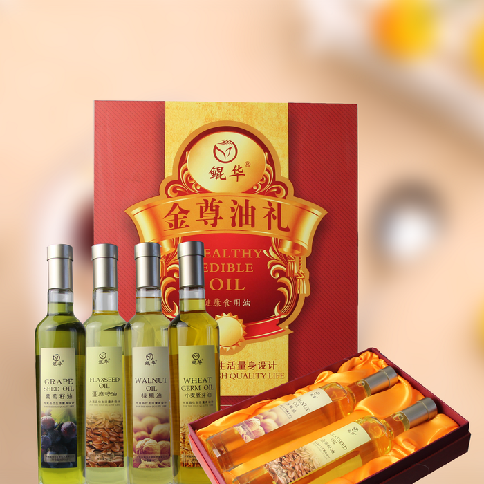 📚 鲲华500ml*2金尊油礼食用油礼盒 葡萄籽油亚麻籽油厂家直销