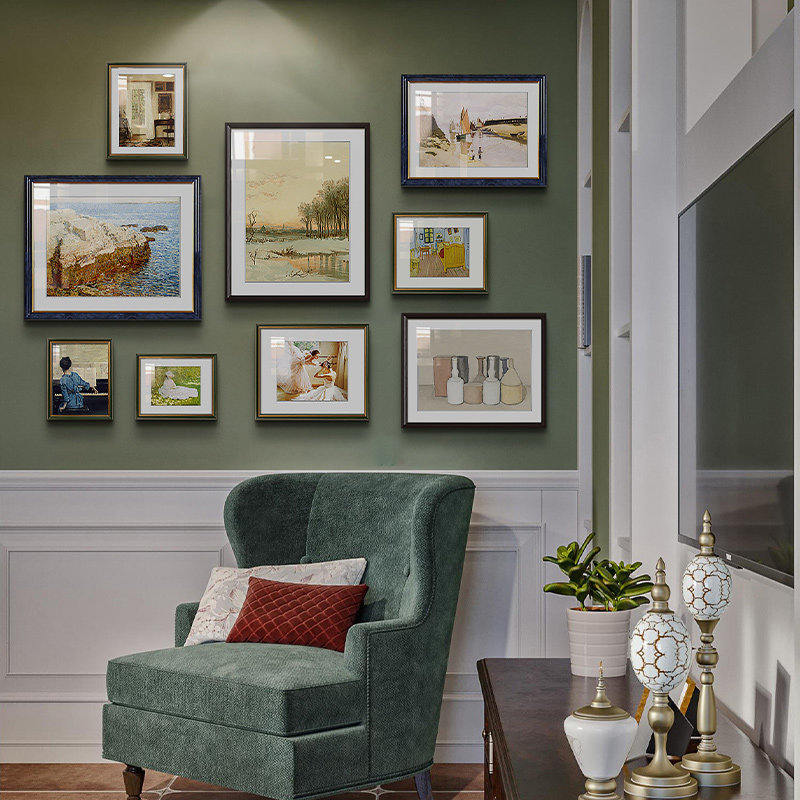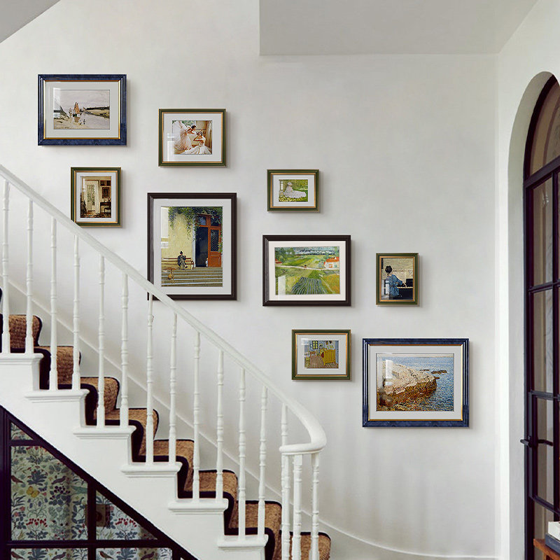 📚 世界名画装饰画梵高油画复式楼梯墙面壁画法式软装美式照片墙挂画