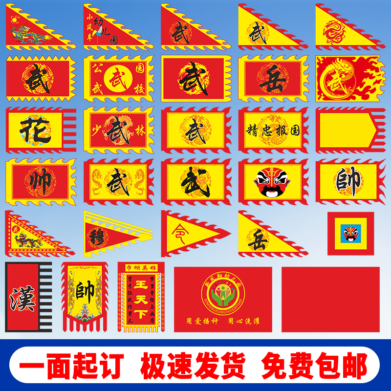 📚 武术表演旗定做学校演出道具京剧脸谱旗岳字旗团旗队旗仿古旗定制