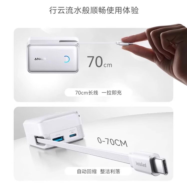 📚 【国家3C认证,现货多色齐全】Anker安克S1伸缩线充电宝2025新款45W快充10000毫安超薄适配苹果安卓可上飞机