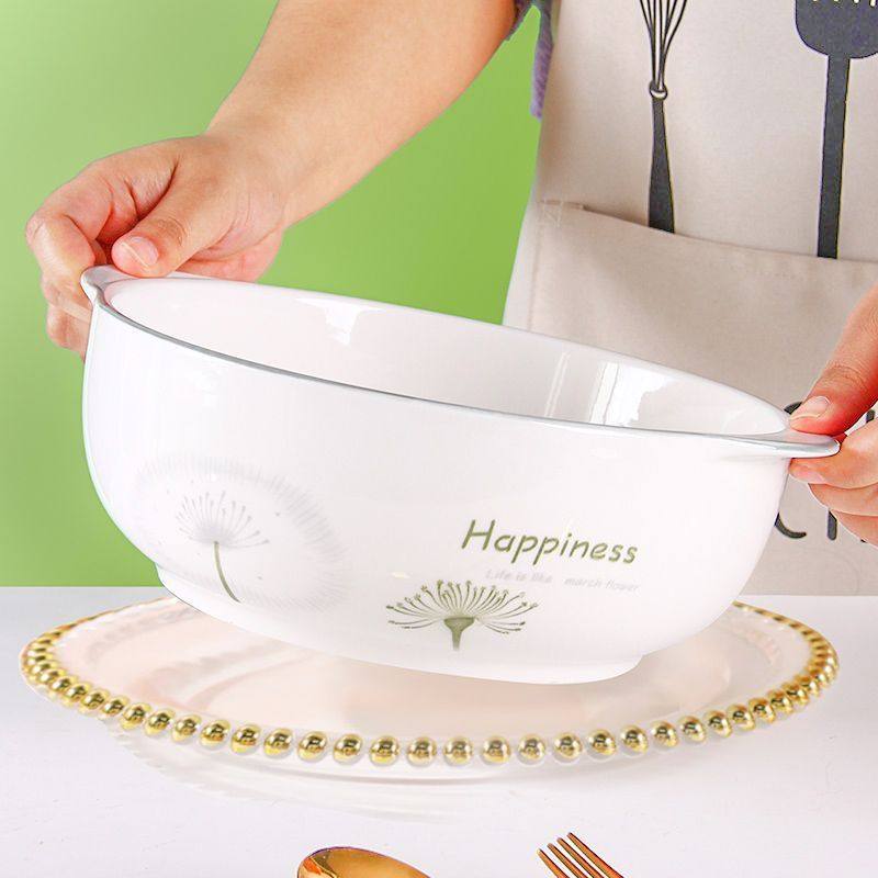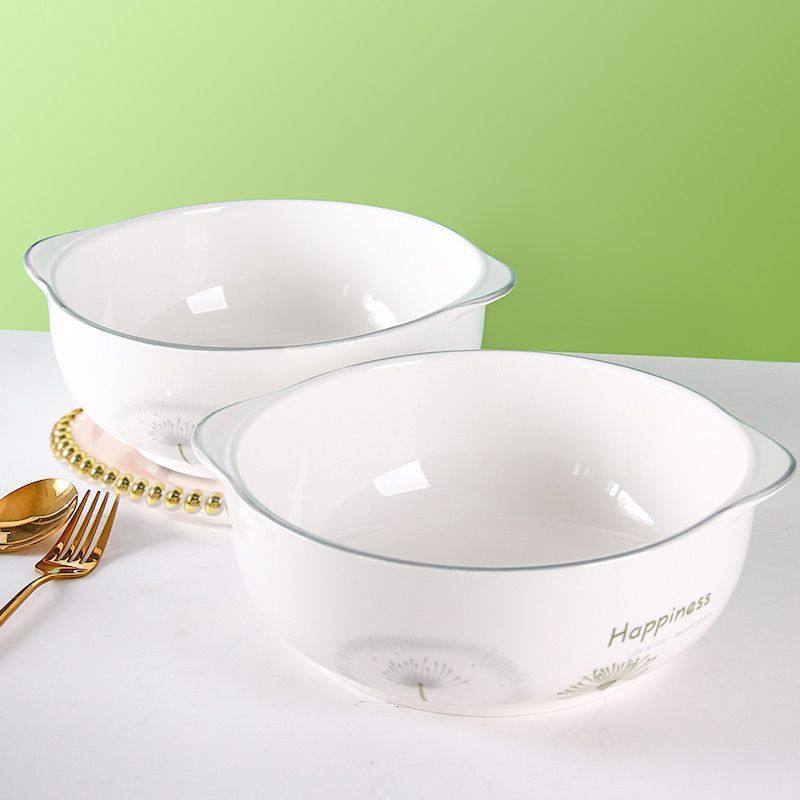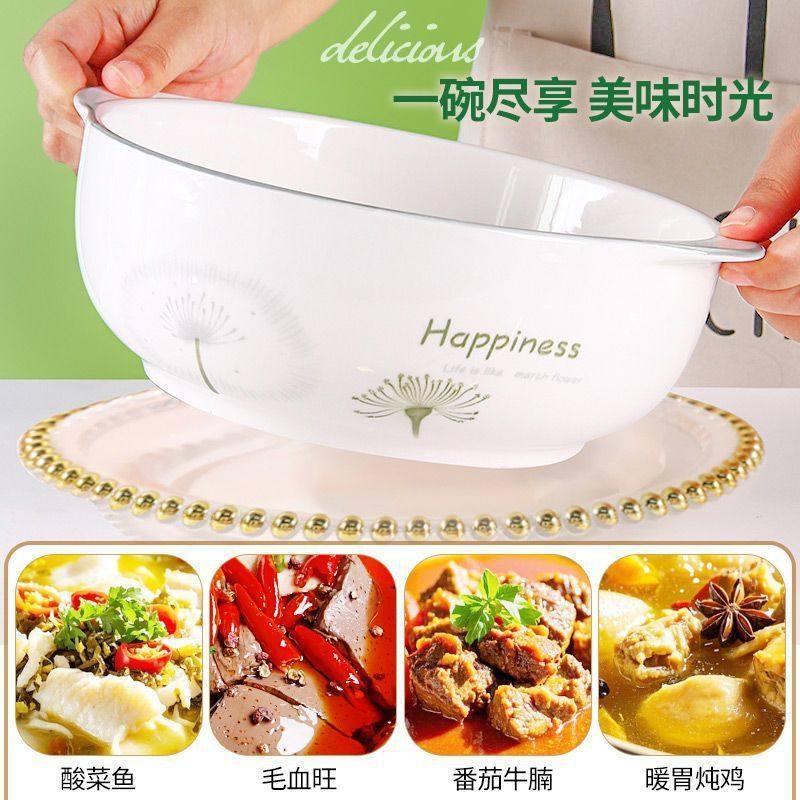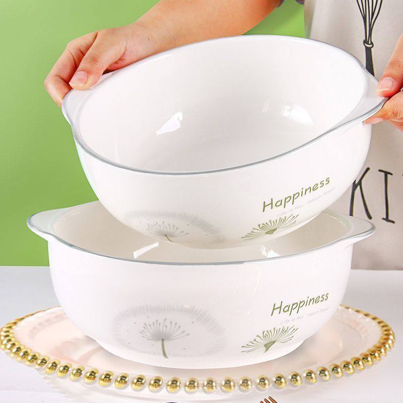 📚 家用10英寸双耳汤锅创意清新釉下彩陶瓷大号碗菜汤盆大容量汤碗