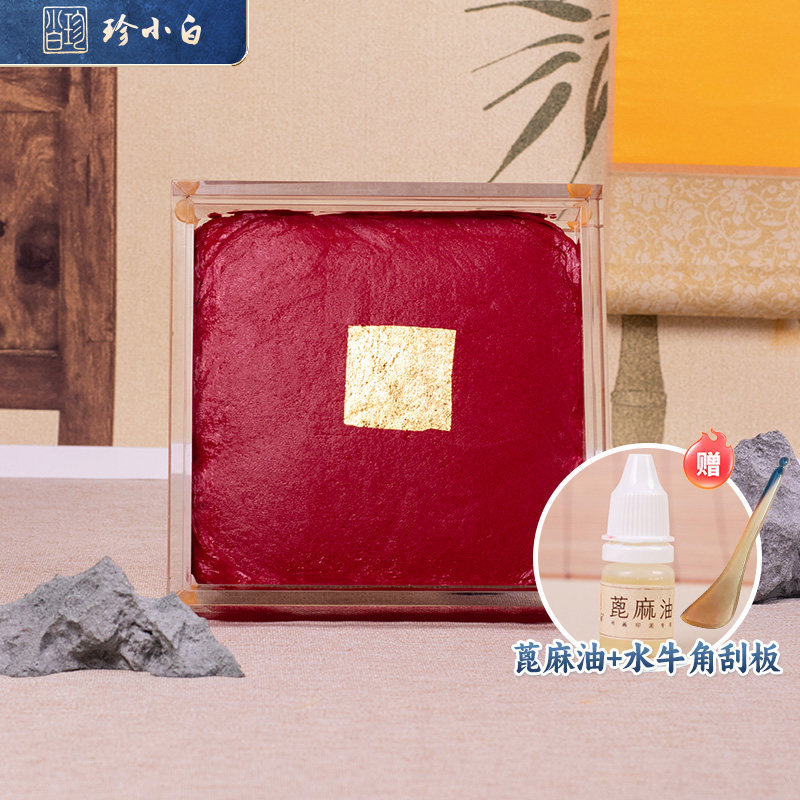 📚 道门自制传统朱砂印泥蓖麻油艾绒朱红色火烧不化遇水不溶朱砂道老师大章面专用印泥带盒