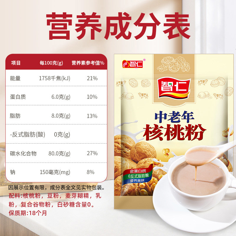 📚 智仁无添加白糖中老年核桃粉独立小袋装即食营养冲泡早餐冲调饮品
