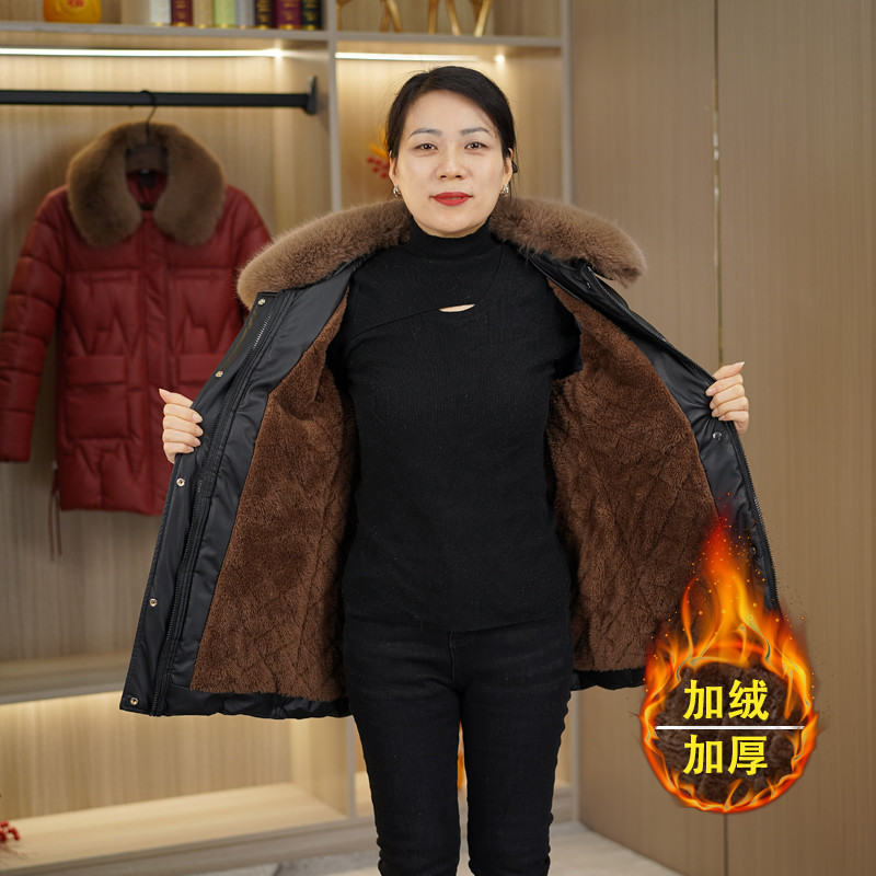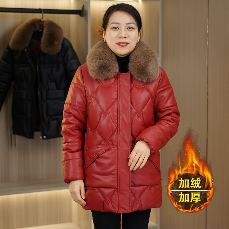 📚 妈妈冬装Pu皮棉衣中长款2025新款中老年女装加绒加厚棉服外套棉袄