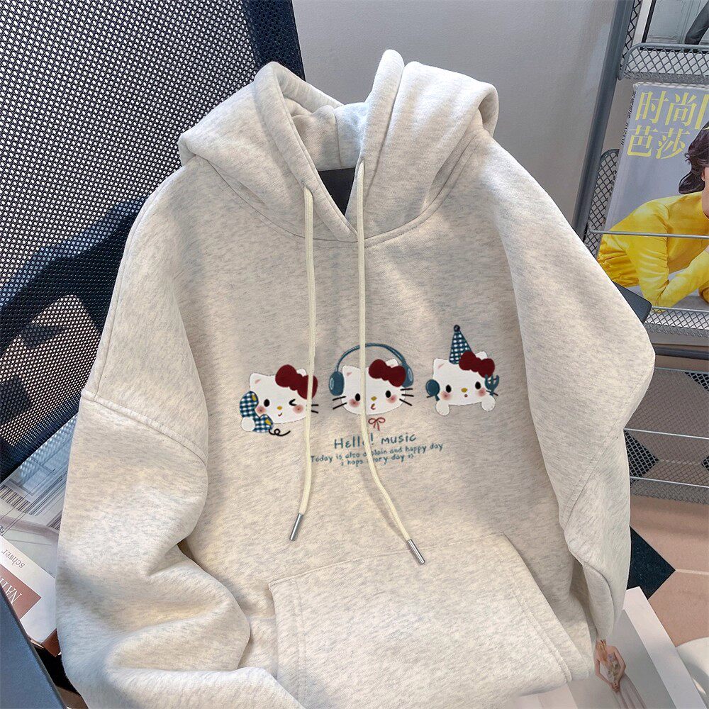 📚 女童秋冬新款凯蒂猫连帽卫衣初中生冬季加绒加厚超好看洋气上衣