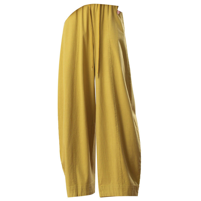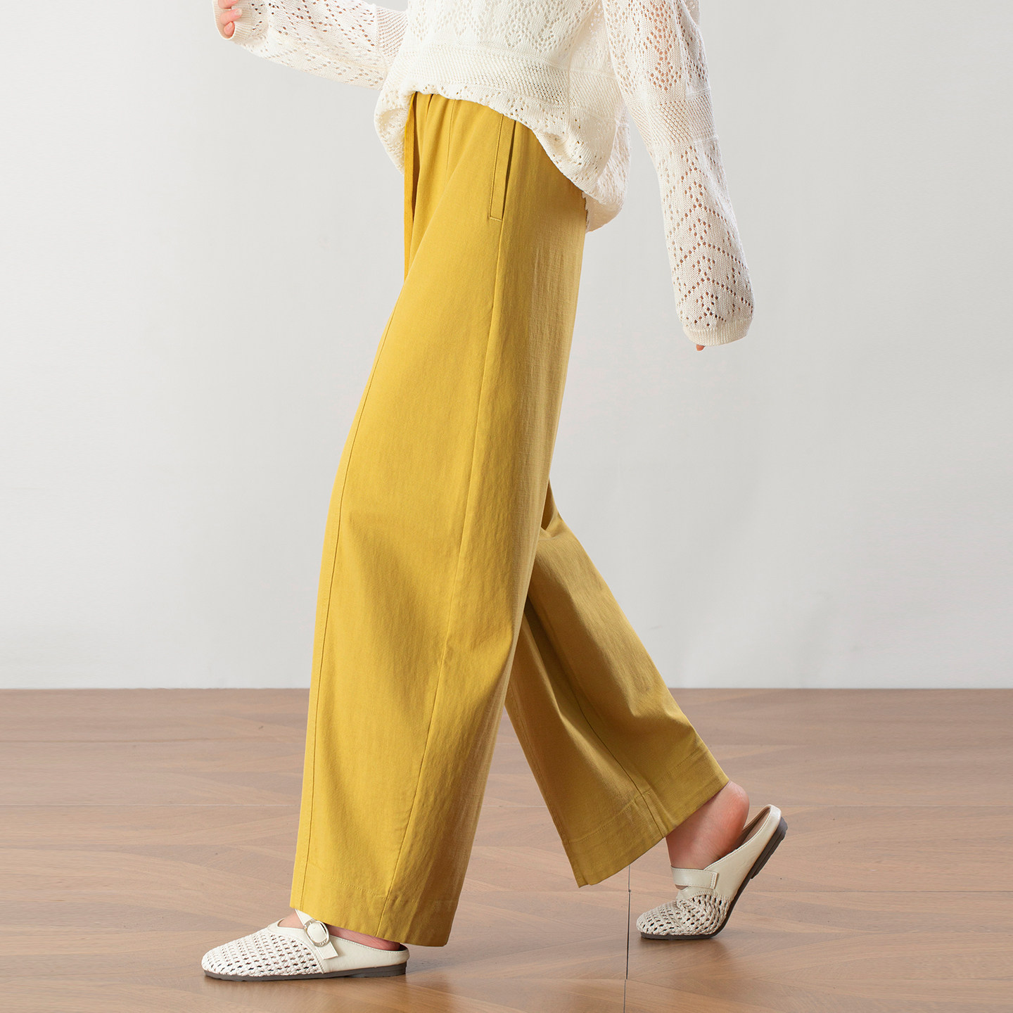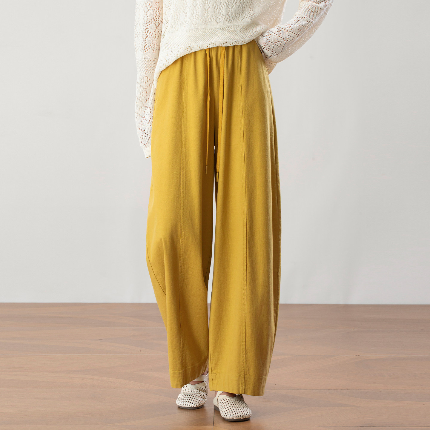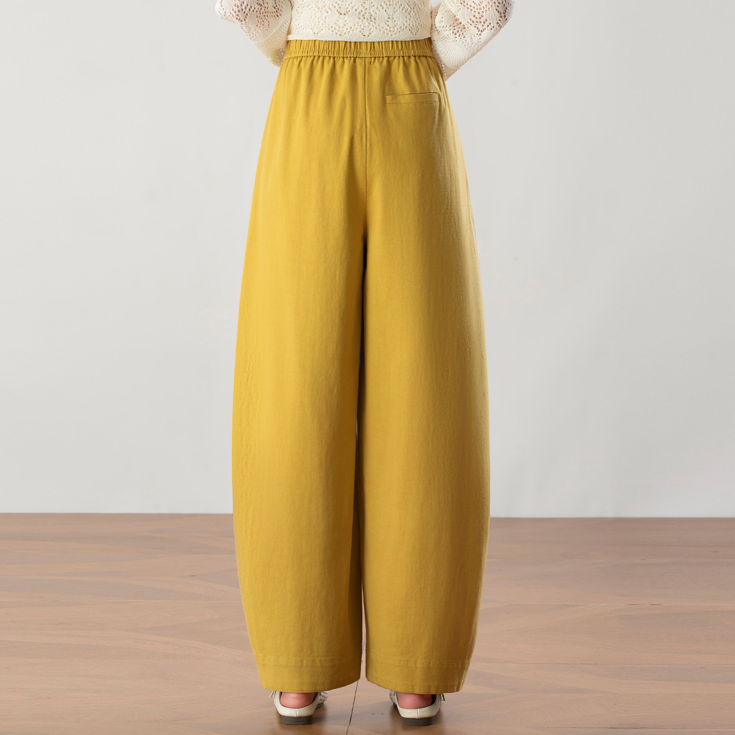 📚 慵懒风天丝棉麻弯刀阔腿裤女2026春夏新款黄色宽松直筒遛弯休闲裤