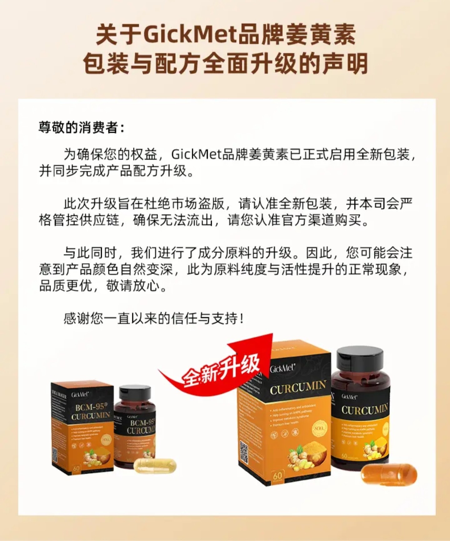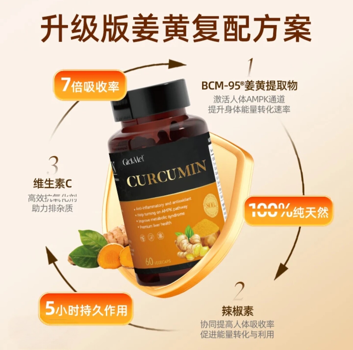📚 GickMet 姜黄素胶囊60粒/瓶【高倍吸收】营养口服 新包装