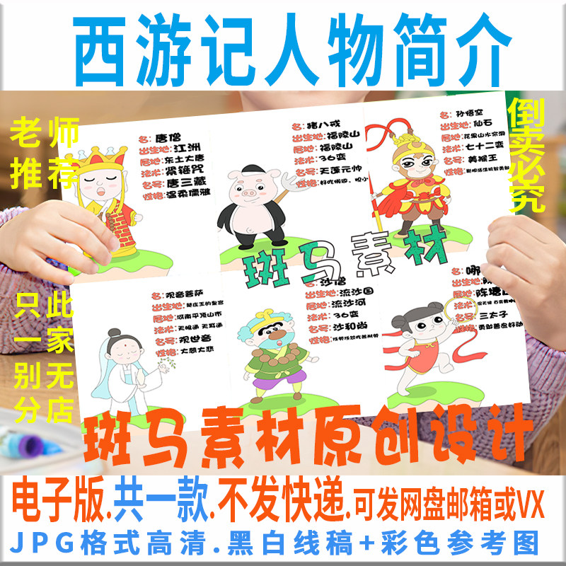 📚 C489西游记人物简介儿童画西游记人物名片手抄报模板电子版黑白线