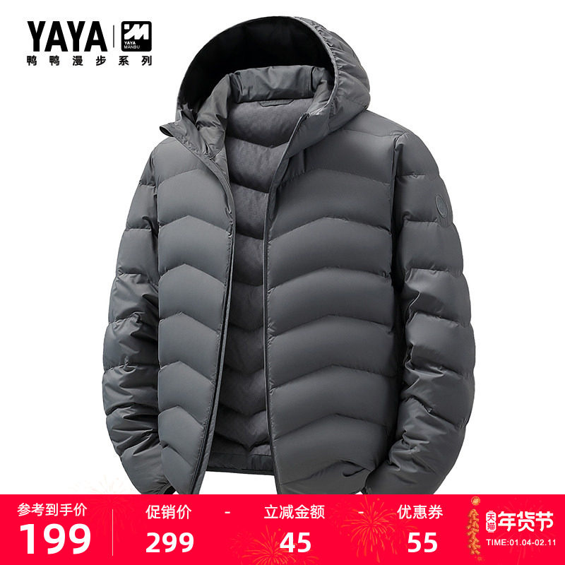 📚 鸭鸭羽绒服男士2025冬季新款保暖休闲时尚连帽排骨鸭绒保暖外套M