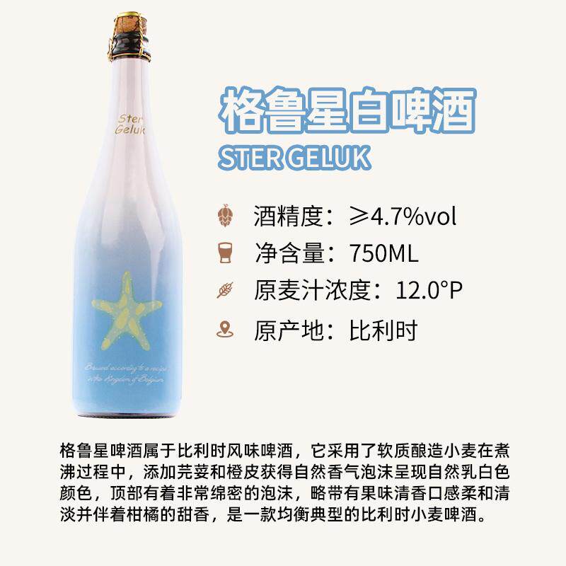📚 比利时进口 格鲁星 大星精酿白啤经典750ml 1大瓶装 整箱精酿啤酒