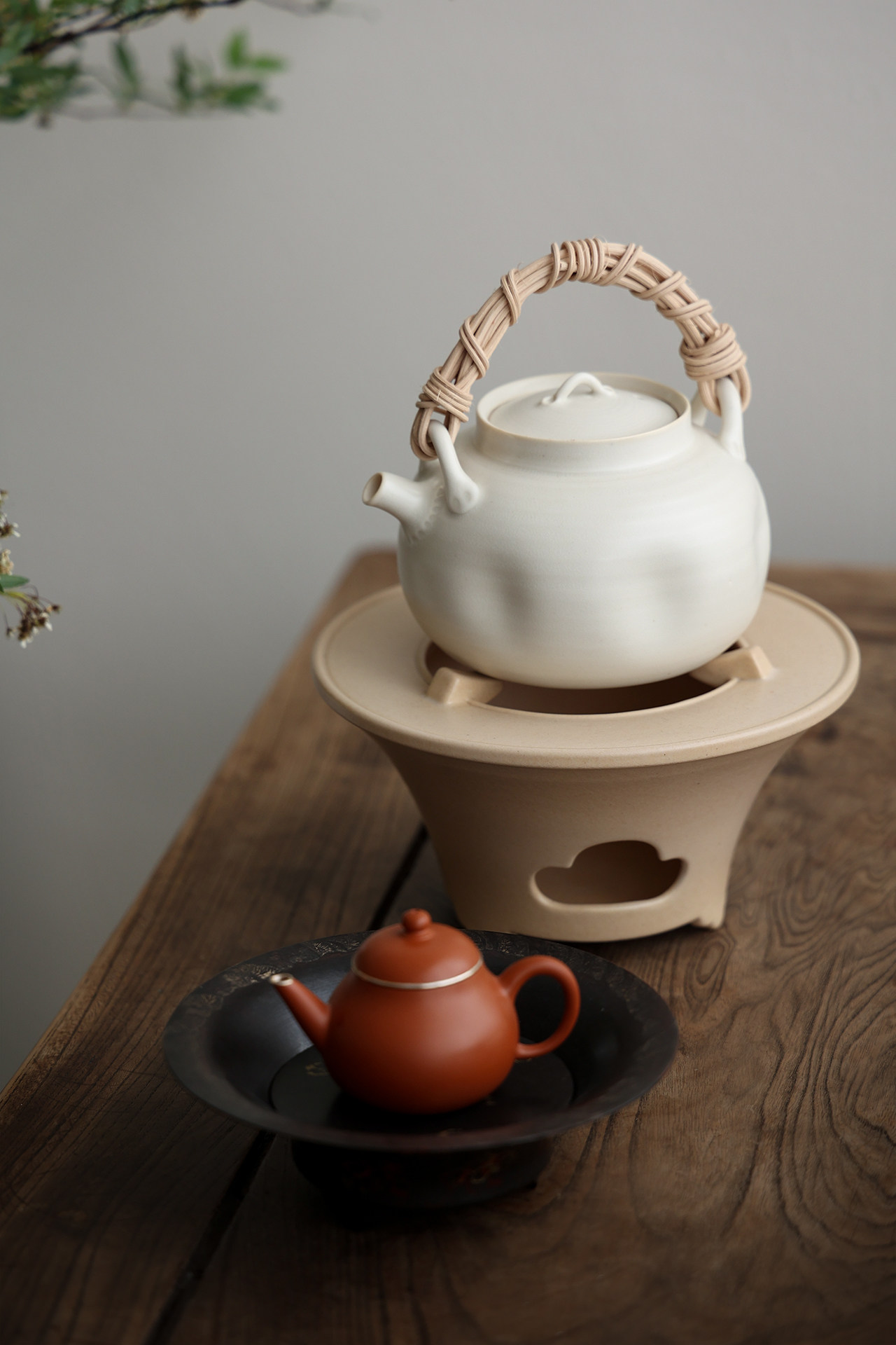 📚 天野云宣煮茶炉酒精炉景德镇陶瓷围炉温茶壶温酒炉套组白泥草木灰